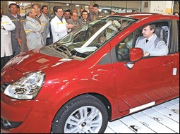 رئيس الوزراء الإسباني داخل سيارة من نوع رينو أثناء زيارته للمصنع الذي افتتح مؤخراً بإسبانيا. رويترز