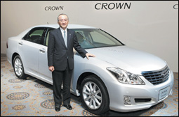 رئيس شركة تويوتا العملاقة يقدم النموذج الجديد من السيارة (كراون) التي قررت تويوتا إعادة تصنيعها ولكن بمحرك هجين. وكانت كراون واحدة من أشهر منتجات الشركة اليابانية. رويترز