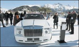 لفتت سيارة رولز رويس فاخرة معروضة في أحد المنتجعات السويسرية انتباه المتزلجين والزوار. وعرضت السيارة على هامش مسابقة للتزلج. رويترز