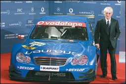 رئيس الفورميولا1 بارني إكليستون في لقطة له بالقرب من سيارة السباقات مرسيدس DTM لحظة وصوله لحفل توزيع جوائز لاوريوس الرياضية العالمية. والجائزة تمنح سنوياً للرياضيين المميزين في مجالهم كل عام. أ.ف.ب