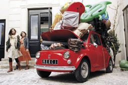 سيارة فيات 500 الكلاسيكية بمتجر في مبنى صناعي بإحدى ضواحي باريس لعرض الملابس التقليدية والمستعملة والسلع المنزلية التي يعود ريعها لمؤسسة تعمل في مجال رعاية الأطفال