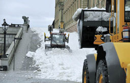 مضمار من الثلج يتم إعداده في استوكهولم بالسويد قبل بدء سباق (ستوكهولم رويال بالاس) للتزلج.وقد اضطر منظمو السباق لنقل هذا الجليد الاصطناعي إلى قلب العاصمة السويدية لصنع هذا المضمار بسبب ندرة الجليد هناك.