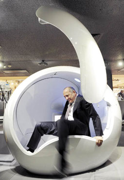 رئيس مجموعة ماكلارين رون دينيس يخرج من كبسولة في المتحف العلمي بلندن ساهمت في اختراعها مجموعة ماكلارين وأطلق عليها (كبسولة الصحة)، وهي أداة تشخيص متطورة تستخدم في إرسال بيانات الرعاية الصحية إلى الأطباء في مختلف أنحاء العالم.