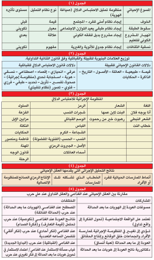 لا شك أن النظام الإحيائي الذي تتبناه الثنائية التجاولية في خطاب القبيلة والقبائلية هو نظام مسوغ، والمسوغات التي يعتمدها الغذامي لتفعيل القانون الإحيائي وما يترتب عليه من احتباس دلالي هي (الخوف ببعده الأسطوري، وسقوط الطبقة الوسطى، انهيار المشروع الكوني في التعليم، نسقية الثقافات من حيث الأصل والتكوين).وبذلك فنحن نقف أمام كل مسوغ إحيائي مقابل منظومة إجرائية لتمثيل الاحتباس الدلالي ونوع