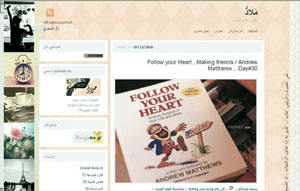«مكتبتي عالمي الجميل» عبارة تصدرت مشروعها المميز إلى جانب نقدها للنصوص العربية والإنجليزية.. ملاذ مدونة سعودية خاصة بقراءت الكتب للواعدة (ريم المسعري) والتي تسعى دوماً لبث روح التغيير في جيلها، عبر ماتدونه في تجاويف الإنترنت، فهي إلى جانب عشقها للتدوين مصورة فوتوغرافية وطالبة إدارة أعمال في جامعة الملك فيصل.. أطلقت لنفسها صفارة إنذار تنتهي بخط نهاية في مشروع متعلق