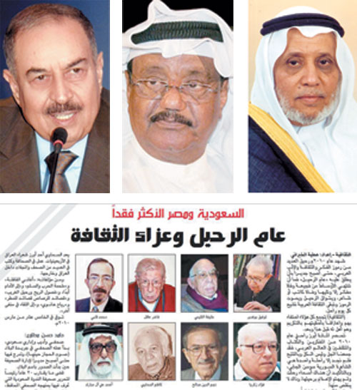 حفل عام 2010 بغياب الكثير من الأسماء الثقافية والأدبية والفكرية في الوطن العربي, وقد كانت الثقافية نشرت ملفاً خاصاً عن الراحلين في هذا العام ضم قرابة أربعين راحلاً من كافة أرجاء الوطن العربي, حيث كانت السعودية ومصر هي الأكثر فقداً بين بقية الدول. ومن أبرز راحلي 2010 المفكر المغربي محمد عابد الجابري والدكتور غازي القصيبي والمفكر الجزائري محمد أركون