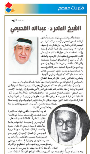 قرأت في مجلتكم الثقافية العدد رقم 330 وتاريخ 16-02-1432هـ مقالاً للأستاذ حمد الزيد في عموده ذكريات معهم تحت عنوان: الشيخ المتمرد: عبد الله القصيمي، وذكر في مقاله ما كان يجدر بمثله أن يترفّع عنه، ومن ذلك:
