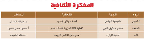 سيكون أبناء عنيزة وزوارها على موعد السبت المقبل مع تظاهرة تقافية كبيرة تقدمها الجمعية الخيرية الصالحية بعنيزة عبر مهرجانها الثقافي في نسخته الثالثة، وتستمر على مدى خمسة عشر يوماً، النصف الأول منها خصص لفعاليات الرجالية وجميعها ستقام على قاعة معالي الشيخ عبدالله النعيم في مركز صالح بن صالح الاجتماعي، والآخر للفعاليات النسائية في مركز الأميرة نورة بنت عبدالرحمن الفيصل الاجتماعي.