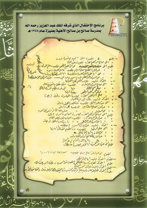 كانت الجزيرة ومجلتها الثقافية الأكثر اهتماماً بمهرجان عنيزة الثقافي الثالث لأنها الراعية الإعلامية له، ومما لفت النظر في المعرض المصاحب للفعاليات وثيقة عمرها ثمانون عاماً بخط المربي الكبير الأستاذ صالح بن ناصر الصالح لبرنامج الاحتفال المدرسي المقام على شرف الملك عبدالعزيز عند زيارته مدرسة ابن صالح الأهلية، وفيها برنامج الاحتفال بتنظيم مدهش في زمن ما قبل البدايات (عام 1355هـ)، والمفاجأة