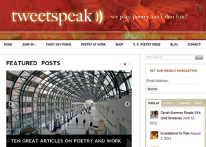 موقع tweetspeakpoetry.com هو موقع متخصص في متابعة شعراء تويتر وقصائدهم القصيرة الإنجليزية، ويمتلك الموقع دار نشر تحوّل كتابة القصائد في تويتر إلى منتجات ربحية يستفيد منها الشاعر وإدارة الموقع.. وبإمكان الشعراء عبره الاستفادة المادية من جماهيريتهم في تويتر عبر تحويل أبياتهم التي لاقت الاستحسان إلى عبارات تزين منتجات مختلفة يشتريها ويحتفظ بها المهتمون بهذه الأبيات.