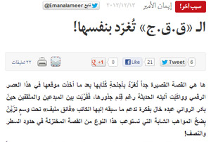 ها هي القصة القصيرة جداً تُغرّدُ بأجنحةِ كُتّابها بعد ما أخذت موقعها في هذا العصر الرقمي وواكَبَت آليته الحديثة رغم قِدَم جذورها، فَقَرَّبَت بين المبدعين والمثقفين حينَ بادر الروائي عبده خال بفكرة تدعم ما سبقه إليها الكاتب «فائق منيف» تحت وسمٍ تزَيَّنَ بِضخّ المواهب الشابة التي تستوعب هذا النوع من القصة المختزلة في حدود السطر والنصف!