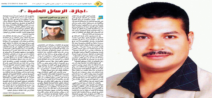 تابعتُ باهتمام بالغ ما كتبه د. عمر بن عبدالعزيز المحمود تحت عنوان (إجازة الرسائل العلمية) في ثلاثة أعداد متتابعة، وأعجبني كشفُه الحر عن موضوع نشعر إزاءه بالخجل، وعندما تتكشف أمامنا الحقائق -التي نعلمها- نُصاب بخزي مؤقت، نعود بعده لممارسة عملنا، لكي نتابع المأساة وهي تتكرر، وتتكرر معها مواقفنا السلبية التي تخضع لسلطة المجاملات والأستاذ الجاهل والآخر المرائي والطالب المغيب والقاعة المكيفة التي تبهرنا مقاعدها والخلوة غير الشرعية والتقدير الممنوح عن أطروحة غير صالحة للمناقشة، ولحظات البهجة التي يعيشها المهرجون وهم يتناولون الكعك والحلوى بعد انتهاء الكوميديا الساخرة.