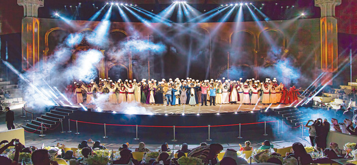 اقيم على مسرح المجاز والذي يعد تحفة معمارية صمم على طريقة المدرجات الرومانية الملحمة التاريخية (عناقيد الضياء) وهي بلا شك عمل ضخم جدا ومفخرة حضارية توجت الشارقة عاصمة للثقافة الإسلامية.