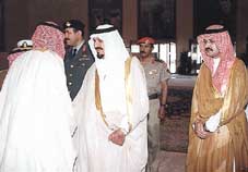 وبعد ان قص سمو الامير سلطان بن عبدالعزيز الشريط ايذانا بافتتاح المبنى قام بمعايدة منسوبي قوة الواجب في الوديعة,