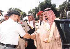 وينقل سمو الامير عبدالرحمن خلال زيارته للمنطقة تحيات وتهاني القائد الاعلى لكافة القوات المسلحة خادم الحرمين الشريفين الملك فهد بن عبد العزيز وسمو ولي عهده الامين وسمو النائب الثاني الى منسوبي القوات المسلحة بالمنطقة الشمالية الغربية,