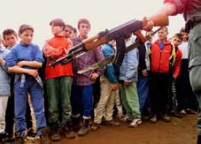 وروى هذا الالباني بحسب الوكالة ان جيش تحرير كوسوفو اخذه بالقوة ودربه ثم اجبره على التسلل الى كوسوفو مع مجموعة يقودها ضباط من الجيش الالباني,واكد التلفزيون ان لجيش تحرير كوسوفو معسكرا في قرية باديش الالبانية على الحدود مع يوغوسلافيا.