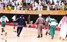 * ولكي نقدم الموضوع بشكل متكامل ومترابط مع كافة الاطراف فقد التقينا الحكم احمد الخلف الذي قال ل الجزيرة : يؤسفني ان يحدث هذا من لاعبي الاهلي فما فعلوه لا يمت للرياضة وللروح والاخلاق الرياضية بصلة خصوصاً من اللاعبين ارقام 4،14،15،18 من محاولة اعتداء وسب وشتم بألفاظ خارجة عن الادب,,