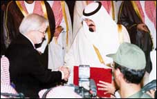 شرف صاحب السمو الملكي الأمير عبد الله بن عبد العزيز ولي العهد نائب رئيس مجلس الوزراء ورئيس الحرس الوطني ظهر امس الاحتفال الذي اقامه الحرس الوطني بمناسبة حصول وكالة الحرس الوطني للشؤون الثقافية والتعليمية على جائزة المجلس العالمي لتعليم الكبار للعام 1999م وذلك في قاعة المحاضرات برئاسة الحرس الوطني بالرياض.