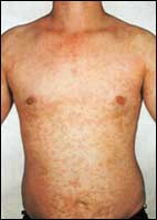 يتميز الطفح الجلدي ببقع صغيرة تتفاوت ألوانها من أبيض، زهري، أسمر إلى داكن، وتتبعثر هذه البقع فوق أعلى الذراعين، الصدر والظهر، وقد تظهر أحياناً فوق الوجه والعنق، أما بالنسبة للأشخاص ذوي البشرة الفاتحة، فقد يتراوح لون الطفح بين أسمر زهري، بينما تكون فاتحة أو داكنة لدى الأشخاص ذوي البشرة الداكنة، ينمو الفطر ببطء ويمنع اسمرار الجلد بصورة طبيعية، وبينما يأخذ بقية الجلد اللون الأسمر بسبب التعرض لأشعة الشمس، فإن البقع الشاحبة التي تأثرت بالفطر تصبح لافتة للنظر بدرجة أكبر، وعلى وجه الخصوص في البشرة الداكنة، عندما يظهر الطفح الجلدي على الوجه والعنق، فقد يسبب قلقاً وازعاجاً شديدين للمريض.