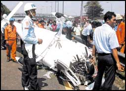 قال مسؤول مستشفى ان الطيار الاندونيسي لطائرة خفيفة تحطمت لقي حتفه وان ثلاثة مسافرين أجانب أصيبوا عندما سقطت الطائرة في......