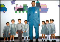 الأطول في العالم(غلام شبير) من قرية سانكره سعادة شيفوت بمديرية جهناك في باكستان - عمره «19 سنة» وطوله «55 ،2»م (مسلم) يلبس حذاء طوله 40 سم 18 بوصة وهذ.........