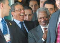 * الجزائر: محمود أبو بكر - علي سالم: اعترف الأمين العام للأمم المتحدة السيد كوفي عنان بتقصير الأمم المتحدة في مواجهة ظاهرة الإرهاب خلال بداياته ولاسيما في الجزائر التي عرفت الظاهرة وخلفت أكثر من 100 ألف ضحية، وأعاد سبب ذلك إلى عدم وجود مفهوم وتعريف واضح وتفهم شامل لمعنى الإرهاب مما يسهل الحركة لمواجهته على مستوى الأمم المتحدة. وأضاف عنان في كلمته التي ألقاها يوم أمس أمام الزعماء العرب في قمتهم السابعة عشرة المنعقدة بالجزائر، انه أصبح من الواضح الآن أن أي تعدٍ على المدنيين فهو شيء مدان في القانون الدولي. وشدد على أن (الحق في المقاومة لا يعطي الحق في الاعتداء على المدنيين بصيغة عشوائية، كما لا يجب الرد على الأشياء غير القانونية بطريقة غير قانونية أيضاً). ودعا كوفي عنان الزعماء العرب إلى أن يكونوا في مقدمة الدول التي تقدم جهودها لمحاربة الإرهاب، وخاصة وأنها تمتلك - حسب الأمين العام - تجربة في مواجهة هذه الظاهرة، وطالبهم بالتفكير مع الأمم المتحدة لتبني سياسة سلمية تساهم في إيجاد الحلول المناسبة للقضايا العادلة ولا سيما بالنسبة لقضية فلسطين، حيث إن العنف لا يوفر الحلول المناسبة. وأدان الأمين العام الممارسات الإسرائيلية التي تعمل على مصادرة أراضي الفلسطينيين، وبناء الجدار الفاصل، لكنه في الآن نفسه طالب الفلسطينيين بعدم مواجهة ذلك بالعنف المضاد. وأشاد بكل من مصر والأردن في جهودهما لإيجاد حل سلمي وتفعيل عملية السلام بين الفلسطينيين والإسرائيليين عبر مؤتمر شرم الشيخ الذي جمع الرئيس الفلسطيني برئيس الوزراء الإسرائيلي، مذكراً بجهود الأمم المتحدة من أجل تحريك عملية السلام ضمن اللجنة الرباعية. وتناول الأمين العام الوضع المستجد في لبنان وسوريا بعد اغتيال رفيق الحريري الذي وصفه (بالمناضل اللبناني الحيوي) وأكّد انه سيقدم تقريراً حول مهمة التقصي المتعلقة بالتحقيق في اغتيال الحريري وطالب بضرورة احترام السيادة الوطنية اللبنانية، مشيداً بالالتزام الذي اتخذه الرئيس السوري بشار الأسد وقال: إنه (التزام تجاهه شخصياً وتجاه مبعوثه الخاص والأمم المتحدة). ولدى تناوله للوضع في العراق، أوضح عنان أنه يعمل (من اجل استعادة سيادة واستقلال العراق) وتطبيع علاقاته مع كافة دول الجوار والعالم، مذكراً بجهود الجامعة العربية في هذا الشأن. وتأسف الأمين العام للوضع الإنساني في دارفور مطالباً بمقاضاة كل المتسببين في الأزمة سواء المدعومين من الحكومة أو المتمردين، وطالب الدول العربية بتخصيص مساعدات مالية للسودان لتجاوز أزمته الحالية خاصة تلك المتعلقة بالوضع الإنساني في دارفور. مشيداً بالإصلاحات الجريئة التي تعرفها الدول العربية، وقال (إن المنظومات السياسية العربية أصبحت أكثر انفتاحاً) مطالباً القادة العرب بالمضي قدماً في هذا التوجه بما (يحقق المزيد من الحرية).