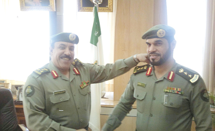 قلّد العميد عبد الرحمن الطويرقي مدير جوازات الرياض كلاً من العقيد محمد سليمان الوهيبي والعقيد عوض محمد الوذيناني رتبتيهما الجديدتين، وذلك في مكتبه بالرياض.