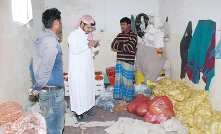 قامت بلدية محافظة حريملاء ممثلة في إدارة الخدمات بقسم صحة البيئة بمتابعة ومراقبة عدد من مصادر جلب الخضار إلى محافظة حريملاء وبتوجيهات من رئيس البلدية عبدالله بن صالح المبيريك وبتعاون مع الجهات المختصة بالمحافظة نتج عن ذلك ضبط كمية كبيرة من الخضار والتمور في إحدى المنازل الشعبية بحي الديرة القديم بحريملاء والمستخدم فعلياً سكناً للعمالة الوافدة، حيث تم استخدام بعض أجزاء السكن مستودعاً لتخزين الخضار والتمور تمهيداً لبيعها على المحال التجارية ومحال الخضار بالمحافظة ومراكزها. وقد ذكر (للجزيرة) رئيس قسم صحة البيئة بالبلدية محمد بن سعد القلعي أن هذه الطريقة التي تم تخزين الخضار بها مخالفة للأنظمة والتعليمات ولها أضرار صحية للاستهلاك الآدمي بسبب عدم تطبيق الإشتراطات الصحية. وأضاف بأنه تم تطبيق الأنظمة والتعليمات بمصادرة المضبوطات وإيقاع الغرامات المالية على هؤلاء العمالة وإحالتهم إلى الجهات المختصة.