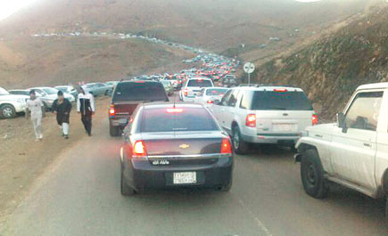 وكان الطريق المؤدي إلى جبل «اللوز» قد شهد أمس وأمس الأول كثافة كبيرة من المتنزهين لم تسجل في تاريخه جاءوا للاستمتاع بمناظر الثلوج، وقدر شهود عيان أن السيارات التي تواجدت تقدر بأكثر من عشرة آلاف مركبة.