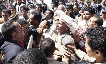 جدد الرئيس اليمني علي عبد الله صالح دعوته لأحزاب المعارضة المنضوية في ما يسمى تكتل (أحزاب اللقاء المشترك) إلى الحوار للخروج من الأزمة الحالية التي تشهدها اليمن. وقال الرئيس اليمني في لقاء أمس بالفعاليات السياسية والحزبية والاجتماعية والشبابية وأعضاء المجالس المحلية ومنظمات المجتمع المدني ورجال الأعمال والمرأة والتكوينات المهنية والنقابية في أمانة العاصمة صنعاء: (لقد دعوناهم ونكرر لقد دعوناهم إلى الحوار والوقوف على طاولة المفاوضات ونحن على استعداد لتلبية طلباتهم إذا كانت مشروعة، فنحن على استعداد للتجاوب مع هذه الطلبات وعلينا أن نلجأ جميعا بشجاعة ومسؤولية ونتحرك نحو طاولة الحوار فالحوار هو أفضل وسيلة وليس التخريب ولا قطع الطرقات ولا قتل النفس المحرمة ولا العبث بالمال العام والحق الخاص لأبناء الشعب اليمني العظيم).