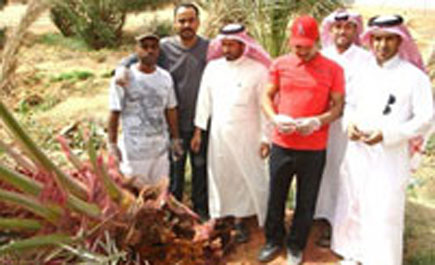 توصل عدد من المزارعين بالدلم بإشراف المزارع عبدالرحمن الفقير في التوصل إلى تركيب خلطة عضوية من الأعشاب عبر معاملة النخلة المصابة بالمركبات الطبيعية في أنفاق السوسة وحققوا نجاحاً جديداً.. ففي إحدى المزارع شمال الدلم تم حقن نخلة مصابة وبعد 24 ساعة تم فتح النخلة كعينة بحضور عدد من المزارعين والمهندسين والفنيين ووجدوا شرانق جافة ويرقات ميتة.
