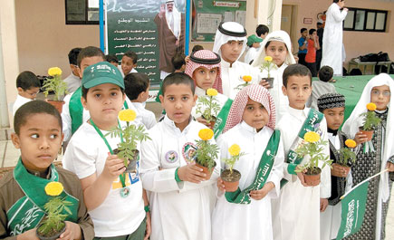 وقد فاجأ الطالب مجاهد بن عصام الدوغان الحضور بتقديم شتلات زهور جميلة أهداها لجميع الطلاب في المدرسة.