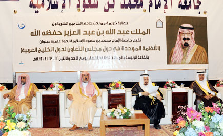 تحت رعاية خادم الحرمين الشريفين الملك عبد الله بن عبد العزيز آل سعود -حفظه الله-افتتح معالي وزير التعليم العالي الأستاذ الدكتور خالد بن محمد العنقري مساء أمس الأحد فعاليات ندوة «الأنظمة الموحدة في دول مجلس التعاون الخليجي»، التي تنظمها جامعة الإمام محمد بن سعود الإسلامية ممثلة في المعهد العالي للقضاء وتستمر لمدة يومين.