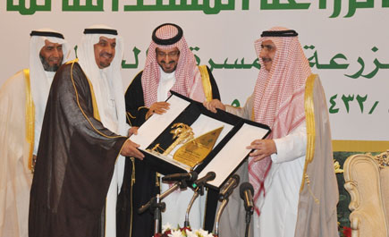 وفي نهاية الحفل تم تسليم الدروع للجهات المشاركة قبل أن يكرم أمير المنطقة الأستاذ سعد بن خلف العفنان الشخصية الزراعية التميزة والأديب الذي قدم كل شيء متميز للوطن ولمجتمعه.