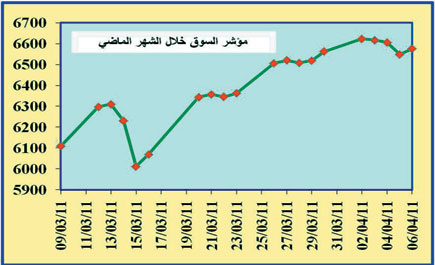 عاش سوق الأسهم السعودي خلال هذا الأسبوع حالة من الاستقرار التام، فرغم أنه تحرك في مدى متسع نسبيا بلغ حوالي 1000 نقطة ما بين 6637 نقطة (أعلى نقطة) و6536 نقطة (أدنى نقطة)، وهو ما يمثل اتساعا لحركة النشاط، إلا أن هذا الاتساع لم ينجم عنه سوى ارتفاع بنحو أثنى عشرة نقطة فقط لا غير.. أيضا لم تسجل السيولة المتداولة تغيرا يعتد به هذا الأسبوع، بل جاءت في حدود 4 إلى 6.9 مليار ريال.. وتتزامن هذه الحالة الاستقرارية للسوق في ضوء العديد من العناصر والمتغيرات بعضها يمثل مستجدات، في حين أن البعض الآخر يعتبر استمرار لمؤثرات سابقة.. ورغم أن بعض هذه المؤثرات تعتبر إيجابية، إلا أن بعضها لا يزال يترك تأثيرات تميل للسلبية نتيجة مخاوف الاضطرابات في بعض الدول العربية حتى لحظة كتابة هذا التقرير، فالاضطرابات في ليبيا واليمن وسوريا تعد العنصر السلبي الوحيد الذي ربما نصفه بأنه يترك تأثيرات مثبطة لسوق الأسهم، أو ربما تمنع استجابة مؤشر السوق (في جزء منه) بشكل حقيقي وقوي للمؤثرات الإيجابية الأخرى والكبيرة في بعضها. ويأتي على رأس هذه المؤثرات الإيجابية بدء انطلاق نتائج أعمال الشركات للربع الأول من هذا العام، والتي تشير كافة التوقعات إلى احتمال تحقيق السوق لأرباح تصل إلى 21 مليار ريال مقارنة بأرباح بلغت 17.6 مليار ريال في الربع المماثل من العام السابق.. أي أن هناك توقعات قوية بأن تنمو أرباح السوق بنحو 19% خلال هذا الربع على أقل تقدير.. وتعتبر هذه النتائج قياسية للسوق على مدى (10) فصول ماضية تقريبا.. أيضا المؤثر الإيجابي الهام، وهو ارتفاع أسعار النفط وتجاوز خام برنت لمستوى 120 دولارا للبرميل، وهو مستوى يعتبر قياسيا مقارنة بالعام السابق.. ثم صعود الذهب والفضة والعديد من المعادن الأخرى لمستويات قياسية.. أيضا نظام الرهن العقاري وما يتوقع أن يضخه من تسهيلات لسيولة جديدة في السوق العقاري، والذي يتيح فوائض أعلى لسوق الأسهم.