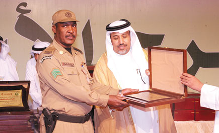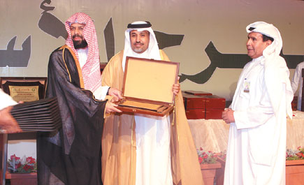 بعد ذلك توجه الدكتور الدجين والمدعوون إلى المسرح حيث أقيم الحفل الختامي والذي تخلله تكريم الجهات المشاركة والداعمة وتلا أسماءهم المهندس إبراهيم الهويمل مدير المهرجان.