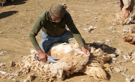 وذكر أبو جراد عطيش الرويلي: أن هناك أوضاعاً خاصة تستخدم لربط الأغنام قبل قصها، فالمضاريع (الرغث) تربط يدها ورجلها من جهة واحدة ولها معاملة خاصة للإسراع (بجزها)، أما (الجلد) والخراف فتربط جميع أيديها وأرجلها وتقص (بالزو) وهو مقص كبير الحجم يستخدم يدوياً وهناك أيضاً مقصات كهربائية ولكنها غير عملية ولا تستخدم كثيراً على حد قوله. وعن القصاص في وقتنا الحالي يتحدث لـ(الجزيرة)، أبو ثامر المعوي الرويلي أحد أقدم ملاك الأغنام بالجوف فيقول: إن الطرق السابقة في القصاص لم تعد متاحة بسبب وجود العمالة الأجنبية التي تقوم بالقصاص بمبلغ مالي يتراوح بين 4-6 ريال للرأس، كما تقوم بعض العمالة بتصدير الصوف إلى تركيا وبلاد الشام لعدم وجود مصانع مختصة رغم جدوى ذلك وكثافة الثروة الحيوانية في بلادنا.