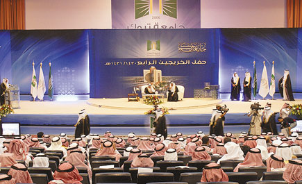 ورفع معالي مدير الجامعة شكره لمعالي وزير التعليم العالي الأستاذ الدكتور خالد بن محمد العنقري ومعالي نائبه الدكتور علي العطية لدعمهما المستمر الجامعة وتوجيهاتهما السديدة لمساعدتها على التميز في المجالات كافة، وبخاصة في نوعية الخريجين والخريجات، وتأهيلهم التأهيل العلمي المناسب الذي يمكنهم من ممارسة العمل في مجالاتهم المختلفة.
