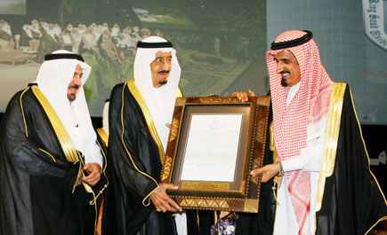 كما قدم معالي مدير جامعة الملك سعود إهداءين لصاحب السمو الملكي الأمير سلمان بن عبدالعزيز عبارة عن درع جامعة الملك سعود، بالإضافة إلى صورة لصك الأرض التي تبرع بها سموه لصالح الجامعة في الدرعية بمساحة 6 ملايين متر مربع، وقد أقيمت المدينة الجامعة الحالية في هذه الأرض التي تبرع بها سموه.
