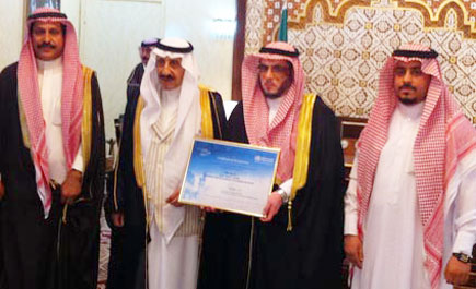 وقد قدّموا شرحاً عن برنامج مدينة عرعر الصحية كما قدّموا لسموه شهادة من منظمة الصحة العالمية ثم التقطت الصور التذكارية مع سموه.