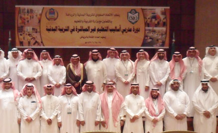 افتتح وكيل الرئيس العام المساعد للشؤون الرياضية محمد القرناس دورة (مدربي أساليب التعليم غير المباشر في التربية البدنية) والتي ينظمها الاتحاد السعودي للتربية البدنية الرياضية ممثلاً في لجنة التربية البدنية والرياضة المدرسية بقاعة المؤتمرات بمجمع الأمير فيصل بن فهد الأولمبي بمدينة الرياض مساء يوم أمس الأول السبت 25-6-1432هـ بحضور نائب رئيس الاتحاد السعودي للتربية البدنية والرياضة الدكتور جمال القروني ومدير عام النشاط الطلابي بوزارة التربية والتعليم الأستاذ مرعي القحطاني ومدير النشاط الرياضي بوزارة التربية الدكتور سعد السند ورئيس لجنة الرياضة المدرسية الدكتور رشيد الحمد عدد من المسؤولين بالاتحاد. وبدأ الحفل بالقرآن الكريم رتله علي البكري مشرف التربية البدنية بمحافظة النماص. ثم ألقى الدكتور جمال القروني كلمة الاتحاد أشاد فيها بالتعاون الكبير بين وزارة التربية والرئاسة العامة لرعاية الشباب. موضحاً بعضاً من برامج وأنشطة الاتحاد التي يسعى من خلالها إلى المساهمة في تطوير الرياضة المدرسية. ثم ألقى الأستاذ مرعي القحطاني كلمة الوزارة أعرب فيها عن شكره للاتحاد السعودي للتربية البدنية والرياضة على إقامة هذه الدورة المتميزة في العديد من النواحي، والتي تسعى الاستثمار التربية البدنية في تطوير قدرات الطلاب في مختلف المناحي، مؤكداً أن الرياضة لم تعد ترفاً أو مضيعة للوقت ولكنها أصبحت جزءاً مهماً في تقديم برامج تساهم في تصحيح الكثير من السلوكيات والممارسات الخاطئة لدى الطلاب. بعد ذلك ألقى الأستاذ محمد القرناس كلمة أشار فيها إلى أن الرئاسة يسرها أن توفر جميع إمكاناتها المادية البشرية من أجل الرقي بالرياضة المدرسية، وقد نجح الاتحاد السعودي للتربية البدنية والرياضة مؤخراً في تنفيذ أول برنامج من نوعه على مستوى المملكة من أجل اكتشاف المواهب المتميزة في عدد من الألعاب في المدارس من أجل صقلها والعناية بها وتطوير إمكاناتها. وقد تم تنفيذ البرنامج في كل من الرياض ومكة المكرمة وسيتم استكمال باقي المناطق في المراحل القادمة. بعد ذلك قام وكيل الرئيس العام المساعد الأستاذ محمد القرناس بتقديم اتحاد التربية البدنية لوزارة التربية والتعليم. بعد ذلك قام قام بتكريم معدي الحقيبة التدريبية للدورة وهم الأستاذ خالد الخريجي والأستاذ خالد بن ناصر السبر والأستاذ رشيد البداح والأستاذ مرعي القحطاني. بعد ذلك انطلت أعمال الدورة والتي تستمر لمدة أربعة أيام بمشاركة مشرفي التربية البدنية من مختلف إدارات التربية والتعليم بمناطق ومحافظات المملكة. وتتناول عدد من المحاور أهمها مدخل الأساليب غير مباشرة في تعليم التربية البدنية أساليب الاكتشاف البنية والأهداف وقنوات التطور. وأساليب الاكتشاف (وصف وتصميم دروس باستخدام الأسلوب). وتطبيقات عملية لأساليب الاكتشاف في دروس التربية البدنية. والتفكير المتشعب حل المشكلة (البنية، الاهداف، قنوات التطور، وصف وتصميم الأسلوب). وتطبيقات عملية لأسلوب التفكير المتشعب (حل المشكلة) في التربية البدنية. وبرنامج تدريب المدربين (معارف ومهارات واتجاهات المدرب الفعال). وتتناول الجلسة الأخيرة برنامج تدريب المدربين (معارف ومهارات واتجاهات المدرب الفعال).
