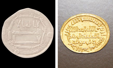 ويؤكد خبراء المسكوكات أن بعض مقتنيات المكتبة من العملات يمثلاً دليلاً على تفاعل الحضارة الإسلامية بدء من القرنين الثاني والثالث الهجري مع الحضارات الأخرى, ولا سيما فيما يتعلق بالأنشطة التجارية, حيث يرجع أصول هذه العملات إلى مدن ودول غير إسلامية مثل الدولة البيزنطية والدولة الفارسية, وتم إعادة سكها, بما يتناسب مع هوية الدول الإسلامية قبل أن تبدأ سك عملات خاصة بالدول الإسلامية المتعاقبة.