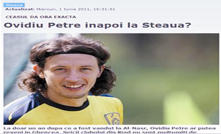 وتوقعت تلك المصادر أن تكون عودة بيتري لملاعب رومانيا في إطار صفقة يتنازل خلالها اللاعب عن جزء من مستحقاته المالية لدى النصر في سبيل إلغاء العقد الحالي وهو ما سيكون أمراً مربحاً للفريق الروماني الذي يبحث عن لاعبين في مركز المحور.