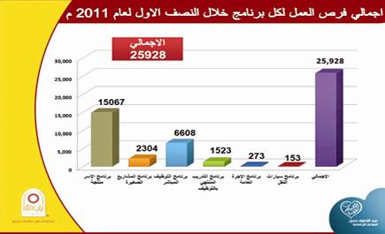 كما التحق 153 شابا بالعمل في برنامج تمليك سيارات النقل، الذي يلحق من خلاله الشبان بالعمل في مجال النقل بحيث يحصل الشاب على سيارة يقوم من خلالها بنقل البضائع والخضراوات والمعدات والركاب.