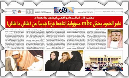 أود الإحاطة بأن موكلي المخرج عامر الحمود سيكون في إنتاجه مستقبلاً إذا لم يقم ببيع المسمى لـ (طاش ما طاش) ملتزماً بالآداب الإسلامية واحترام العادات والتقاليد السعودية والالتزام كذلك بعدم وجود اختلاط النساء بالرجال أو إسقاط حجاب المرأة حيث تمثل ذلك في الجزأين الأول والثاني، وسيكون ملتزماً بمسلسل مخالف لما كان ولا زال السدحان والقصبي في إنتاجهما للمسلسل ولدينا أقراص إلكترونية (سي / دي) تعمل على (دي / في / دي) تستعرض الجزئين الأول والثاني. علق على هذا التصريح الكاتب خلف الحربي فقال إنه يتوقع بعد هذا التصريح إنتاج طاش الإسلامي وطاش العلماني، وأضاف بأن مشكلتنا الكبرى أن الجميع يحاولون المتاجرة بالدين الحنيف ومن ضمنهم منتجو المسلسلات التلفزيونية. من حقنا أن نتساءل ونتوقع من الحمود (إذا افترضنا) أن ينتج نسخة من (طاش ما طاش) بطريقة إسلامية (صرفة) يتعهد خلالها بعدم مشاركة أي عنصر نسائي طالما تعهد بعدم الاختلاط حتى لو حضرت الممثلة مع زوجها أو شقيقها لكنها ستضطر إلى الاجتماع بممثلين وفنيين ومخرج وإدارة إنتاج، وهل ستكون بكامل حجابها وبأي مذهب ستكون؟ وكيف سيخالف السدحان والقصبي؟ هل في كيفية الطرح؟ أم في السقف؟ أم في القضايا محل الخلاف أم ماذا؟
