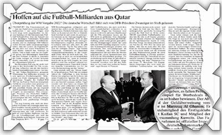 كشـــفت صحيفــــة «فرانكفورتـــــر الجيمانيز تسايتونغ» الألمانية عن فضيحة مالية شابت الحملة الانتخابية للسيد محمد بن همام لرئاسة الاتحاد الدولي «الفيفا» ضد بلاتر حيث قالت الصحيفة إن النائب مرزوق الغانم تورط من خلال تحويل مبلغ 4.750 ملايين دولار إلى حساب بن همام الخاص في سبتمبر الماضي وقالت الصحيفة أيضا في موضوع نشرته أنها تملك نسخة من تحويل مصرفي إلى الحساب الشخصي لابن همام في سبتمبر 2010 من رجل الأعمال الكويتي الثري مرزوق الغانم وتمتلك وثائق تثبت تحويل المبلغ وكان ابن همام قد رفض الكشف عن حساباته الخاصة أمام لجان التحقيق في الفساد وفي تقرير مفصل للصحيفة الألمانية ذكرت أن ابن همام تلقى مبلغا كبيرا من رجل الأعمال الكويتي مرزوق الغانم قدره 4.750 ملايين دولار وتساءلت عن الرابط بين جمع ابن همام الأموال ووعود الجهات المانحة في حال فوزه برئاسة الفيفا من جهة أخرى وعبر شبكة التواصل الاجتماعي تويتر نفى مرزوق الغانم وهو نائب في مجلس الأمة الكويتي ورئيس لجنة الرياضية بالمجلس و يشغل منصب مدير الكرة في نادي الكويت والذي كان رئيساً له قبل أعوام نفيه القاطع حيال ما أوردته صحيفة «فرانكفورتر تســـايتونغ» الألمانية عن تقديمه مبلغا ماليا لرئيس الاتحاد الآسيوي لكرة القدم محمد بن همام في سبتمبر الماضي وأنه عار من الصحة تماما وأنه سيتخذ كل الإجراءات القانونية بحق من نشر وروج لمثل هذه الادعاءات وأضاف رجل الأعمال الكويتي مرزوق الغانم أنه لا يمتلك في الأساس أي حساب في البنك وتحويلي مبالغ لبن همام افتراء و تحريك الإجراءات تجاه الصحيفة الألمانية وستكشف روابطها المحلية وقال الغانم إذا التحويل في سبتمبر، لماذا الانتظار لمحاكمة بن همام؟ وذكرت الصحيفة الألمانية (دعم) وإحدى الصحف المحلية ادعت (رشوة).