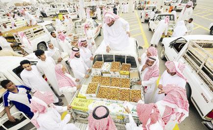 سعوديون يتمردون على العادات ويعملون دلالين وشيالين في مهرجان التمور