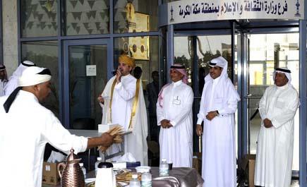 أقام فرع وزارة الثقافة والإعلام بمنطقة مكة المكرمة أمس حفل معايدة لمنسوبي الوزارة بمناسبة حلول عيد الفطر المبارك، بحضور مدير عام فرع الوزارة سعود الشيخي. تضمن الحفل كلمة ترحيبية بالحضور، تحدث فيها الأستاذ سعود الشيخي، عن بهجة العيد وأثره الاجتماعي لتصفية النفوس وتحقيق التآلف والمحبة بين الناس