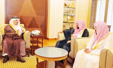 استقبل صاحب السمو الملكي الأمير فيصل بن بندر بن عبد العزيز، أمير منطقة القصيم في مكتب سموه بمقر ديوان الإمارة في مدينة بريدة ظهر أمس وكيل وزارة الشئون الإسلامية والأوقاف والدعوة والإرشاد المساعد لشؤون المساجد والدعوة والإرشاد الشيخ عبد المحسن آل الشيخ، الذي يزور منطقة القصيم حالياً بحضور مدير عام فرع الوزارة بالقصيم الشيخ سليمان الضالع، وجرى خلال اللقاء بحث عدد من الأمور المتعلقة بشئون المساجد في منطقة القصيم, كما تم التطرق لمشروع خادم الحرمين الشريفين الملك عبد الله بن عبد العزيز آل سعود - حفظه الله - الذي اعتمد له مبلغ خمسمائة مليون ريال لترميم وصيانة المساجد على مستوى المملكة، مبيناً أنه سيتم تنفيذ ورش عمل بعنوان: (منبر الجمعة رسالة ومسؤولية) في مدينة بريدة ومحافظات ومراكز منطقة القصيم الأسبوع المقبل وسيتم التركيز بشكل أساسي على خطباء الجوامع.