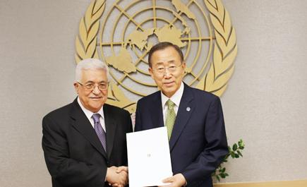وقال عباس في خطابه أمام الجمعية العامة للامم المتحدة «تقدمت بصفتي رئيسا لدولة فلسطين ورئيس اللجنة التنفيذية لمنظمة التحرير الفلسطينية إلى سعادة بان كي مون السكرتير العام للأمم المتحدة بطلب انضمام فلسطين على حدود الرابع من حزيران عام 1967، وعاصمتها القدس الشريف، دولة كاملة العضوية الى هيئة الأمم المتحدة».